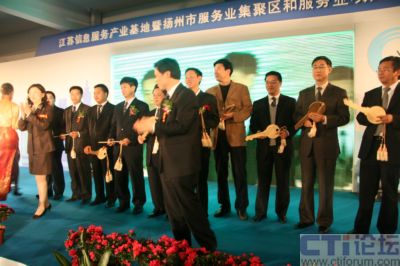 4月21日,江蘇信息服務(wù)產(chǎn)業(yè)基地暨揚(yáng)州市服務(wù)業(yè)集聚區(qū)和服務(wù)業(yè)項目推介洽談會在江蘇信息服務(wù)產(chǎn)業(yè)基地(揚(yáng)州)隆重召開,省信息產(chǎn)業(yè)廳副廳長龔懷進(jìn)、揚(yáng)州市委常委、常務(wù)副市長張京霞為省信息安全技術(shù)中心揭牌,中國網(wǎng)通集團(tuán)公司總工程師滕勇,神州數(shù)碼高級副總裁陳勇,上海萬得信息股份董事長陸風(fēng)等數(shù)十位集團(tuán)公司老總現(xiàn)場祝賀,同時IBM、AVAYA、優(yōu)勝資訊、神州數(shù)碼等60多家企業(yè)現(xiàn)場簽定了投資合作協(xié)議,而華潤通信、中國電信、酒店無憂、漢世紀(jì)等10家企業(yè)則從廣陵區(qū)委書記孔令俊手中接過了入駐金鑰匙,成為首批入駐江蘇信息服務(wù)產(chǎn)業(yè)基地的企業(yè),至此江蘇信息服務(wù)產(chǎn)業(yè)基地迎來首發(fā)項目招商的“開門紅”,江蘇信息服務(wù)產(chǎn)業(yè)基地也因此被業(yè)界冠以中國首家專業(yè)定位信息呼叫和數(shù)據(jù)處理產(chǎn)業(yè)的“中國聲谷”的美譽(yù)。 “江蘇信息服務(wù)產(chǎn)業(yè)基地(揚(yáng)州)”位于廣陵新城內(nèi),為省信息產(chǎn)業(yè)廳與揚(yáng)州市政府聯(lián)手打造的中國首家專業(yè)定位于呼叫信息和數(shù)據(jù)處理產(chǎn)業(yè)的省級信息服務(wù)業(yè)基地,占地2.52平方公里,總投資50億元,處于揚(yáng)州ECBD核心區(qū)域,交通便捷,區(qū)位優(yōu)勢獨(dú)特,生態(tài)環(huán)境優(yōu)美;匕凑铡爱a(chǎn)業(yè)社區(qū)”的標(biāo)準(zhǔn)和“商務(wù)公園”的理念規(guī)劃建設(shè),重點(diǎn)發(fā)展信息服務(wù)產(chǎn)業(yè)及具有揚(yáng)州特色的城市信息化應(yīng)用軟件和嵌入式軟件產(chǎn)業(yè),立足長三角、面向全國、服務(wù)世界,逐步發(fā)展成為全國乃至世界呼叫中心產(chǎn)業(yè)最佳實踐基地、全國生產(chǎn)性服務(wù)業(yè)的標(biāo)桿示范基地及呼叫中心人才培訓(xùn)與派遣基地。