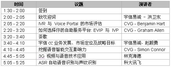 EVIP(Edify Voice Interaction Platform)11.0 新產(chǎn)品已于2010年3月正式發(fā)布,針對新產(chǎn)品所帶來的智能自助服務(wù)、融合與綠色服務(wù)等新體驗,由宇信易誠與Convergys共同舉辦的“EVIP如何優(yōu)化您的自助服務(wù)及IVR Voice Portal市場趨勢”的聯(lián)袂路演將于2010年4月20日北京、4月22日上海舉辦。