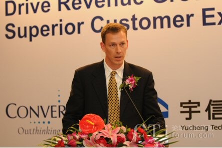 Convergys亞太區(qū)常務(wù)董事Benjamin Hart向到場(chǎng)嘉賓介紹了Convergys公司的情況及亞太區(qū)的業(yè)務(wù)發(fā)展方向等內(nèi)容。Benjamin先生是一位真正的中國(guó)通,已在中國(guó)生活和工作了10多年,有非常高的漢語(yǔ)水平,并且具有豐富的美國(guó)式的幽默、樂(lè)觀和信達(dá),現(xiàn)場(chǎng)的演講非常具有感染力。在開(kāi)展中國(guó)和國(guó)際業(yè)務(wù)期間,Ben在IT、呼叫中心和IP消息領(lǐng)域積累了12年的銷(xiāo)售、渠道開(kāi)發(fā)和經(jīng)營(yíng)管理經(jīng)驗(yàn)。本次大會(huì)上,Benjamin先生非常明確的表示,Convergys的未來(lái)業(yè)務(wù)發(fā)展重點(diǎn)將致力于為中國(guó)乃至亞太區(qū)的呼叫中心、客戶服務(wù)與關(guān)系管理領(lǐng)域提供優(yōu)秀的產(chǎn)品、技術(shù)及顧問(wèn)服務(wù)等。同時(shí),Ben也表達(dá)了對(duì)與宇信易誠(chéng)在中國(guó)地區(qū)開(kāi)展合作擁有很大信心。