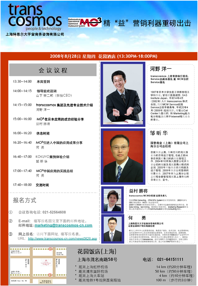 欲知詳情請登陸以下網(wǎng)址:www.transcosmos-cn.com/news0828.asp