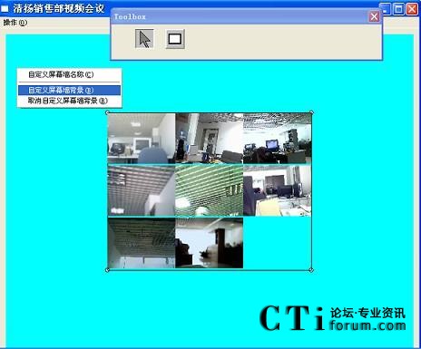 在大多數(shù)人的印象里,使用軟件進行視頻會議時所顯示的圖像無論是大小還是顯示的位置都是固定的,無法改變。即使是顯示整個會場,也只能是把全部的圖像都顯示在一個固定的對話框中。而軟件屏幕墻定制的功能,可以隨意的對整個會場進行布局,如屏幕墻的背景,名稱,圖像的位置,大小。