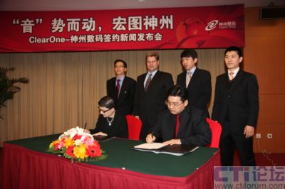 2009年3月10日,國內(nèi)最大的整合IT服務(wù)提供商神州數(shù)碼和國際領(lǐng)先的高端音頻會(huì)議系統(tǒng)供應(yīng)商ClearOne在京簽約,共同拓展國內(nèi)音頻會(huì)議系統(tǒng)市場(chǎng),依托ClearOne的技術(shù)、產(chǎn)品、行業(yè)優(yōu)勢(shì)和神州數(shù)碼強(qiáng)大的市場(chǎng)號(hào)召力及運(yùn)維能力,開創(chuàng)國內(nèi)音頻會(huì)議系統(tǒng)領(lǐng)域全新格局,為企業(yè)、教育、培訓(xùn)、醫(yī)療及政府等行業(yè)客戶帶來全新震撼體驗(yàn)!