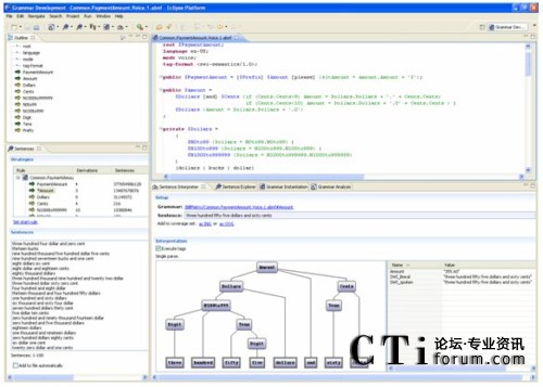 這里強調(diào)的Eclipse插件,除了本身作為優(yōu)秀工具,還提供了附加于Eclipse工作臺內(nèi)的順暢互操作性:你可以一邊看著對應呼叫者輸入的對話流程,一邊檢查和完成語音識別語法;你也可以一邊構(gòu)建連接后臺的Web服務代碼,一邊通過簡單地拖放來調(diào)整應用邏輯。開發(fā)者首次擁有了對所有應用方面的同時控制,無須在不同IDE之間進行切換,或者在選擇單一環(huán)境時在特性上的折衷。