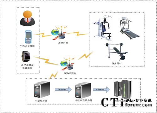 基于物聯(lián)網(wǎng)的綜合信息管理健身系統(tǒng),以下簡(jiǎn)稱物聯(lián)網(wǎng)健身系統(tǒng)----IOT Fitness system(IOTFS),本系統(tǒng)是將物聯(lián)網(wǎng)技術(shù)(ZIGBEE、GPRS等傳輸方式)以及語(yǔ)音合成技術(shù)(TTS)的應(yīng)用集成于一體。技術(shù)方案主要利用無線通訊技術(shù)、射頻技術(shù)、電子技術(shù)、計(jì)算機(jī)技術(shù)、信息網(wǎng)絡(luò)技術(shù)、傳感技術(shù)等高科技術(shù)的設(shè)備和軟件所組成,以構(gòu)建完善的客戶健身服務(wù)系統(tǒng)和健身房運(yùn)營(yíng)系統(tǒng)相結(jié)合的統(tǒng)一的信息管理健身系統(tǒng)。