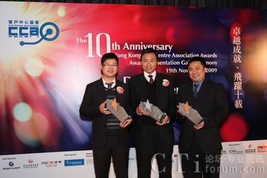 CTI論壇(ctiforum)11月20日消息(記者 張塵):11月19日晚,大中華區(qū)領(lǐng)先信息通訊技術(shù)服務(wù)商第一線安萊于2009年香港客戶中心大獎評選晚會中,再次囊括三項大獎:最佳外包客戶中心 (呼入)、最佳華南客戶中心 (100席以上) 及最佳離岸客戶中心。加上上個月由中國呼叫中心協(xié)會CNCCA授予的“2009中國(亞太)最佳外包呼叫中心”及全球IP通訊聯(lián)盟所頒發(fā)的“最佳外包呼叫中心供應(yīng)商(國內(nèi))”獎,第一線安萊在這個金秋時節(jié)可謂收獲頗豐。第一線安萊IP呼叫中心再次獲得業(yè)界的認(rèn)同,這也體現(xiàn)了第一線安萊在該項產(chǎn)品及服務(wù)方面擁有領(lǐng)先的優(yōu)勢,通過持續(xù)進(jìn)步,為客戶創(chuàng)造有利的營運(yùn)模式,也有助于奠定企業(yè)服務(wù)的標(biāo)準(zhǔn),再度奪獎乃實(shí)至名歸。