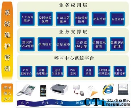 系統(tǒng)通過人工坐席、自助語音服務(wù)、電子郵件、傳真、即時聊天工具等方式,受理客戶所申辦的快遞業(yè)務(wù),生成派單并轉(zhuǎn)發(fā)給相應(yīng)部門進(jìn)行處理。待處理結(jié)果通過網(wǎng)絡(luò)返回到企業(yè)呼叫中心后,客服人員以電話、傳真、短信息、電子郵件等方式回復(fù)客戶?蛻粢部呻S時通過本系統(tǒng)了解所申辦業(yè)務(wù)現(xiàn)處于哪一環(huán)節(jié)及哪一部門所處理。系統(tǒng)的來電彈跳功能可以使客服人員第一時間獲知來電者的身份背景資料,迅速了解其歷史消費信息、詳細(xì)地址等等資料。