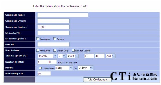 設(shè)定會議基本信息后,點擊下面的Add Conference button,頁面如下: