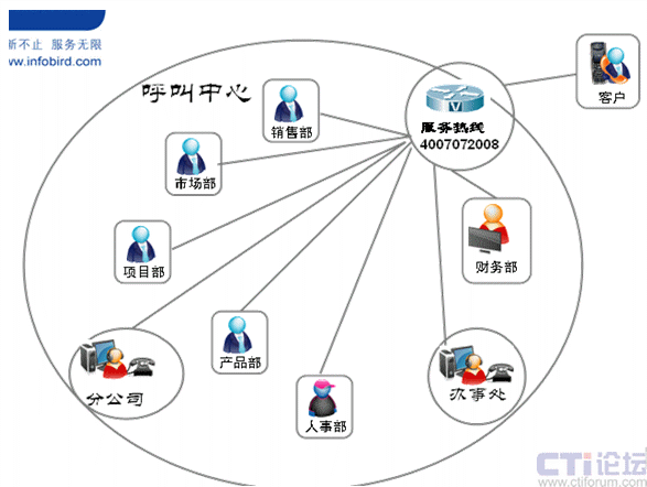 呼叫中心可以與企業(yè)的財務(wù)系統(tǒng)、OA系統(tǒng)、ERP系統(tǒng)、CRM系統(tǒng)等進(jìn)行整合,幫助企業(yè)輕松實現(xiàn)整個業(yè)務(wù)流程的管理、企業(yè)內(nèi)外溝通過程的管理。每個流程、每個節(jié)點都是可以被量化,可以被審查和糾正的。呼叫中心部門已經(jīng)不再局限于對客戶的服務(wù)提供,已經(jīng)完全成長為一個提升企業(yè)效率和運營能力的服務(wù)管理部門。通過下表我們看到呼叫中心在組織中的職能架構(gòu)發(fā)生變化,已經(jīng)完全成為與客戶溝通的最重要的部門之一。