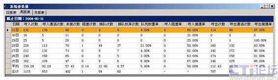 主要考察系統(tǒng)分項業(yè)務(wù)指標(biāo),如中繼線、分機、座席員、業(yè)務(wù)組等,便于了解系統(tǒng)運行狀況
