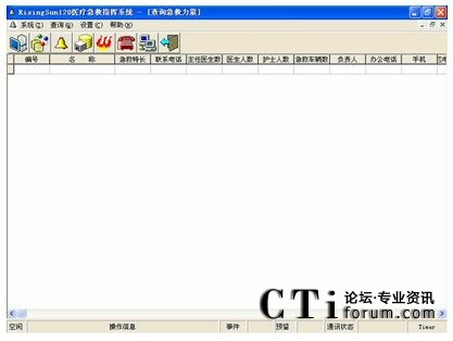 急救實力數(shù)據(jù)庫:包括急救站名稱、值班領(lǐng)導姓名、通信員姓名、急救人數(shù)、車輛編號、車輛類型、車輛狀態(tài)、車輛位置等。