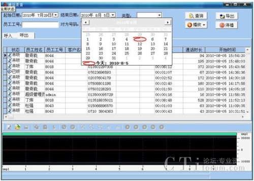 系統(tǒng)不需要額外添置任何設(shè)備,即擁有全數(shù)字化自動(dòng)錄音系統(tǒng),連續(xù)不間斷錄音時(shí)間長(zhǎng)(根據(jù)計(jì)算機(jī)硬盤而定),容量大,同時(shí)系統(tǒng)既能根據(jù)管理員設(shè)定的參數(shù)進(jìn)行錄音自動(dòng)備份,也可對(duì)重點(diǎn)錄音文件手工備份;錄音能在任意坐席播放;同時(shí)系統(tǒng)也支持脫離系統(tǒng)環(huán)境,針對(duì)某個(gè)備份的錄音文件介質(zhì)隨意進(jìn)行查詢和回放。