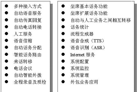 根據(jù)需求和系統(tǒng)配置計(jì)算結(jié)果,可以結(jié)合應(yīng)用系統(tǒng)的需求,來進(jìn)行產(chǎn)品選型。建設(shè)呼叫中心涉及的主要產(chǎn)品有: