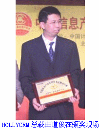 2006年1月10日,北京。中國計(jì)算機(jī)用戶協(xié)會(huì)"2005年度企業(yè)及產(chǎn)品頒獎(jiǎng)典禮"在世紀(jì)金源大飯店隆重召開。在Call Center(呼叫中心)及CRM(客戶關(guān)系管理)領(lǐng)域位居業(yè)界領(lǐng)先地位的HOLLYCRM(合力金橋軟件)公司自主知識(shí)產(chǎn)權(quán)的HollyC6呼叫中心解決方案再度成為業(yè)界關(guān)注焦點(diǎn),榮獲"中國信息產(chǎn)業(yè)2005年度優(yōu)秀解決方案"大獎(jiǎng)。