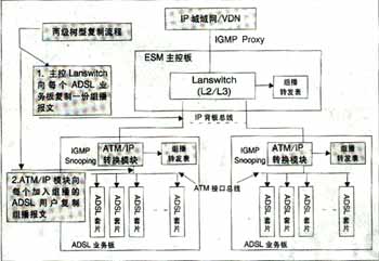 SmartAX MA5300通過XDSL業(yè)務(wù)板的IGMP Snooping功能與主框ESM板的IGMP Proxy配合實(shí)現(xiàn)高效的二級復(fù)制組播業(yè)務(wù);驹砣鐖D2所示。