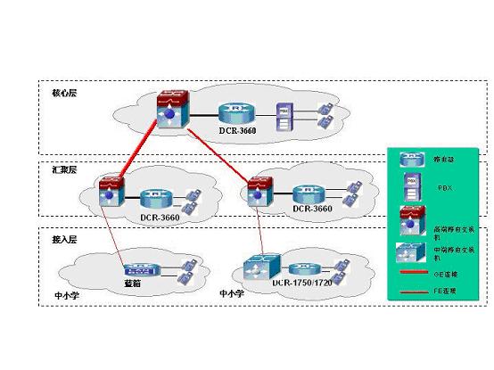 同時,DCR-3660、DCR-2600系列路由器為增強(qiáng)教育城域網(wǎng)VoIP管理,提供內(nèi)置H.323網(wǎng)守功能,可以在區(qū)縣教委提供免費(fèi)本地網(wǎng)守,減輕市教委網(wǎng)守的壓力。