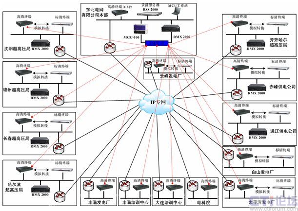 HDX 9002高清視頻終端和POLYCOM EagleEye高清攝像機;在東北電網公司的直屬單位和分支機構部署的MCU為POLYCOM