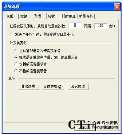 設(shè)置自動重發(fā)次數(shù)、重發(fā)間隔時間、語音提示、定時關(guān)機時間等。