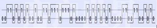 模擬信號的形成比較簡單、直觀,但在傳輸過程中容易受到外界干擾發(fā)生畸變,從而降低通信質(zhì)量;數(shù)字通信是與模擬通信不同的另一種通信方式。數(shù)字信號的傳輸、記錄、處理都采用數(shù)字(“0”和“1”)信號。由于數(shù)字信號抗干擾強(qiáng)、生產(chǎn)的畸變小,也容易消除,因而可以大大提高通信質(zhì)量。使用PCM(Pulse-Code Modulation)調(diào)制后的采樣聲波如下所示: