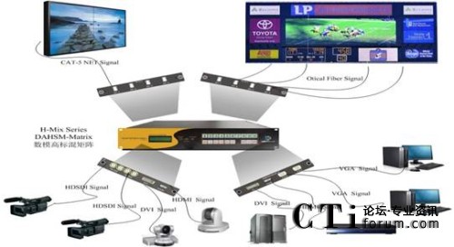 Kensence H-Mix系列產(chǎn)品專門為解決在視頻工程中遇到的諸多問題而設(shè)計,將數(shù)字視頻信號、模擬視頻信號、高清視頻信號和標(biāo)清視頻信號混為一體處理成高清720p@60Hz或1080p@60Hz信號的HDMI的高清數(shù)字信號通過網(wǎng)絡(luò)傳輸?shù)囊豢疃嗝襟w混合矩陣。Kensence H-Mix采用Silicon Image HDMI v1.3芯片,支持HDMI\DVI\3GSDI\HDSDI\SDI\VGA\YPbPr\CVBS信號的輸入和HDMI\DVI\CAT-5\光纖信號的輸出,可將VESA\CEA\HDTV各種不同分辨率的信號轉(zhuǎn)換為HDTV的高清視頻分辨率,并且可以通過普通五類雙絞線或多模光線進行高清視頻的傳輸。Kensence H-Mix可以通過網(wǎng)絡(luò)、RS232、IR、軟件、前面板對系統(tǒng)進行控制管理,采用插卡式設(shè)計可以任意進行系統(tǒng)組合,方便靈活。模塊化雙電源冗余熱備份功能可以實現(xiàn)7日24小時連續(xù)開機,保證系統(tǒng)安全可靠工作。