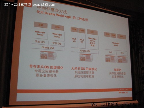 而甲骨文是關(guān)注公有云還是私有云呢?就如甲骨文“更多的企業(yè)最終將混合采用公有云和私有云”那樣,甲骨文的云計(jì)算策略是既支持公有云又支持私有云使客戶有選擇余地。不過喻思成也坦言,由于甲骨文關(guān)注企業(yè)市場(chǎng),可能更多的精力還是放在私有云的建設(shè)上。