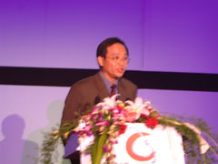 宋俊德教授以詼諧幽默的口吻講述了3G的業(yè)務(wù)生成和業(yè)務(wù)平臺。他把3G比做一列車,在用戶需求的引領(lǐng)下,在技術(shù)發(fā)展運營商的推動下,在政府綠燈的庇護(hù)下,3G的增值業(yè)務(wù)運行了。3G業(yè)務(wù)多種多樣,促進(jìn)了增值服務(wù)價值鏈的形成。并以移動和聯(lián)通為例,解說3G的業(yè)務(wù)平臺體系。宋俊德教授風(fēng)趣生動的演說方式,引得場內(nèi)陣陣笑聲。