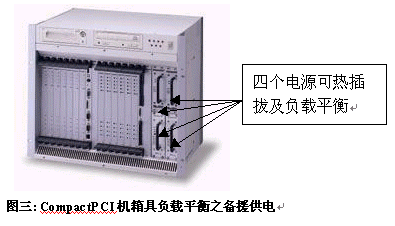 如圖三,CompactPCI機(jī)箱備有熱備份電源及風(fēng)扇,電源自動(dòng)負(fù)載平衡,降低故障發(fā)生率。
