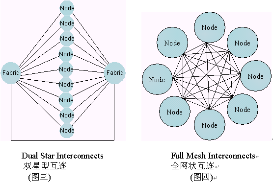 交換接口是ATCA機框中的主要數(shù)據(jù)傳輸接口。ATCA協(xié)議在每個板子上定義了多達15個通訊通路。這些通訊通路可以被配置成全網(wǎng)狀拓撲結(jié)構(gòu)或雙星型拓撲結(jié)構(gòu)。在雙星拓撲結(jié)構(gòu)中每塊板同兩個不同的交換板都有通路。交換板在機框中扮演交換核心的角色。在全網(wǎng)狀拓撲結(jié)構(gòu)中,每一個單板與其它任意單板都保持一個鏈接通路。下圖描繪了雙星型和全網(wǎng)狀結(jié)構(gòu)中的內(nèi)部互鏈的配置。