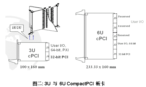 IEEE 1101.1 標準, 符合Eurocard 尺寸規(guī)范,不同的是, CompactPCI 有高密度 (2mm pitch) 的接頭利于板卡的穩(wěn)定性,以及快速抽取式的把手便于更換維修。CompactPCI