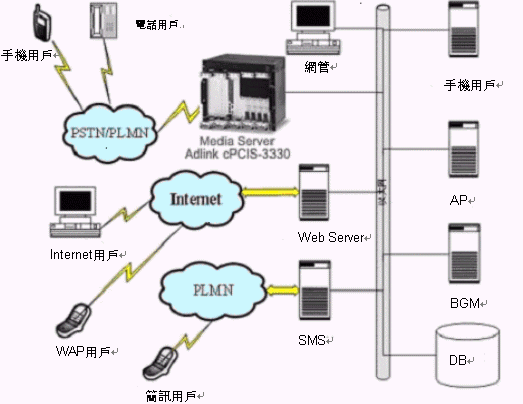 Server)。它采用CompactPCI架構(gòu),完全勝任通訊領(lǐng)域?qū)υO(shè)備的嚴(yán)格要求。BGM的核心硬件采用NMS高密度和高DSP資源CG6500C系列板卡,把PSTN接口、各種電信協(xié)議、綜合的IVR功能、全雙工回音消除、語音編碼、傳真處理、會(huì)議應(yīng)用、高速以太網(wǎng)口以及包協(xié)議等多種功能集中在一個(gè)單槽模塊上。