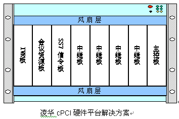 該平臺(tái)是將專業(yè)廠家(如Dialogic,NMS,東進(jìn),三匯,杭州小靈通,邁可行等)的通信板和支撐軟件結(jié)合在電信級(jí)結(jié)構(gòu)的cPCI平臺(tái)上;赾PCI平臺(tái)的綜合業(yè)務(wù)交換平臺(tái)具有豐富的接口板及各類資源板,具有大容量的分布式交換網(wǎng)絡(luò),具有高處理能力及高可靠性的CPU板,具有豐富的數(shù)據(jù)I/O設(shè)備,具有冗余電源及大容量存儲(chǔ)設(shè)備。