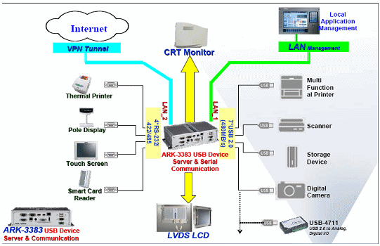 如何讓工業(yè)現(xiàn)場、設(shè)備應(yīng)用環(huán)境中眾多設(shè)備可以通過廣泛使用的USB 技術(shù)進行傳輸和連接?現(xiàn)在有了最佳的解決方案。利用USB技術(shù)的速度、連通性和可用性,研華科技發(fā)布了具有7個USB 2.0 接口ARK-3383嵌入式工控機、透過USB 接口實現(xiàn)多設(shè)備高速連接的應(yīng)用得以最大范圍的使用,同時滿足工業(yè)現(xiàn)場環(huán)境下用戶設(shè)備連接性上的便利。 ARK-3383同時提供4個串口 RS-232/422/485配置、以及2個快速以太網(wǎng)連接端口,滿足現(xiàn)場需求密集的網(wǎng)絡(luò)連通。ARK-3383配置了高效能低功耗的、可升級的Intel® Pentium® M 1.4GHz處理器或超低電壓Intel® Celeron® M 1.0GHz處理器,以及可升級到1 GB DDR內(nèi)存, ARK-3383在提供用戶卓著的連通性與可靠高效的性能的同時,提供極佳的緊湊型體積(264x69.2x137.25mm)滿足對安裝環(huán)境的要求。