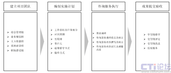 賽迪呼叫顧問咨詢項目團(tuán)隊主要通過以下步驟來協(xié)助該銀行電子商務(wù)中心的建設(shè)工作順利完成。