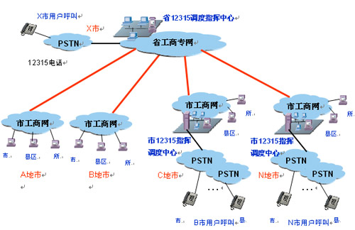 在全省12315系統(tǒng)建設(shè)不均衡的情況下采用分散與集中相結(jié)合的模式最終覆蓋全系統(tǒng)。早期建設(shè)的各地市局12315申訴舉報(bào)系統(tǒng)均為各自獨(dú)立的,后期建設(shè)的地市局可采用業(yè)務(wù)集中模式,在省局建立指揮調(diào)度中心實(shí)現(xiàn)四級(jí)調(diào)度,但呼叫平臺(tái)各局均可單獨(dú)建設(shè)。