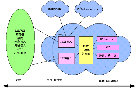 BACKBONE(骨干網(wǎng))、ISIN ACCESS(接入網(wǎng))和ISIN CPE(用戶(hù)端系統(tǒng)設(shè)備),可以構(gòu)成向用戶(hù)提供語(yǔ)音、數(shù)據(jù)、圖像等綜合業(yè)務(wù)的統(tǒng)一的ISIN網(wǎng)絡(luò)體系。