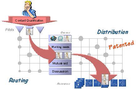 CCD智能呼叫分配器對經(jīng)過呼叫特性鑒別并進入引導系統(tǒng)的呼叫,通過路由選擇矩陣進入不同的等待隊列,并由第二個雙向分配矩陣進行資源選擇或呼叫選擇。CCD先進的雙矩陣分配方式,通過其獨特的技巧和費用最低的路由算法來管理呼叫業(yè)務和資源,其性能超過當前工業(yè)標準。這種呼叫分配算法的顯著特點之一是恰到好處地分離路由選擇、資源分配以及選擇呼叫三個過程,使其既相對獨立,又靈活選擇。而傳統(tǒng)的“矢量分配”法的主要缺點是僅從呼叫的觀點描述處理,缺乏對正空閑的資源該做些什么加以控制。