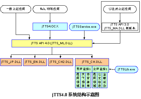 新版本的jTTS_MA.DLL是為了保持向下兼容,它完全繼承原有的jTTS API 3.0的所有函數(shù),不增加也不刪減任何函數(shù)。因此,它也僅能完成以前版本的功能(但可以利用最新的中文引擎,提高聲音質(zhì)量),提供它的目的僅僅在于用戶能夠不改動原有程序繼續(xù)運(yùn)行,但如果希望使用新的功能,必須使用jTTS_ML.DLL,利用新的API進(jìn)行開發(fā)。