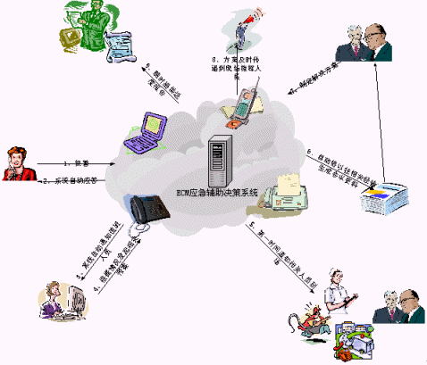 處理"非典"事務需要多個部門共同完成。應急指揮系統(tǒng)會把相關信息根據(jù)置好的流程自動通過語音電話、短信和傳真發(fā)送到上級領導和相關的職能部門,以便及時得到來自各方面的支持反饋,使得處理突發(fā)事件時做到緊張有序。