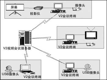V2 Conference 視頻會(huì)議系統(tǒng)是基于MPEG-4標(biāo)準(zhǔn)的多媒體壓縮技術(shù),利用IP網(wǎng)絡(luò)開(kāi)展視頻會(huì)議的軟件系統(tǒng)。在從56Kbps撥號(hào)到寬帶的網(wǎng)絡(luò)環(huán)境下,用戶利用V2 Conference視頻會(huì)議平臺(tái),通過(guò)配備普通的PC機(jī)、標(biāo)準(zhǔn)的音視頻采集和輸出設(shè)備,就可以實(shí)現(xiàn)基于Intranet/Internet的虛擬會(huì)議。系統(tǒng)不僅可以提供流暢的語(yǔ)音,而且提供清晰流暢的視頻圖像。與傳統(tǒng)的基于硬件的解決方案相比,V2 Conference 是純軟件解決方案。用戶無(wú)需投入高昂的成本,就能夠?qū)崿F(xiàn)高質(zhì)量、高可靠性的音視頻通訊、協(xié)同工作、文檔共享、遠(yuǎn)程會(huì)議管理等多種會(huì)議功能,有效地節(jié)約時(shí)間和經(jīng)費(fèi),提高企業(yè)的工作效率。