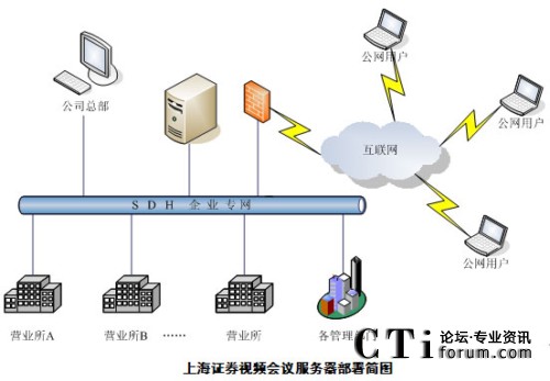 上海證券一直以來都重視IT在企業(yè)發(fā)展中的重要作用,公司成立了信息技術(shù)總部專門負(fù)責(zé)公司信息化平臺(tái)的建設(shè)與維護(hù)。2009年4月上海證券視頻會(huì)議項(xiàng)目進(jìn)入最終選型階段,經(jīng)過多次測試和評比,最終選用音視頻效果好,運(yùn)行穩(wěn)定,成熟度高的北京威速科技有限公司視頻會(huì)議產(chǎn)品V2 Conference視頻會(huì)議系統(tǒng)。2009年6月完成了項(xiàng)目實(shí)施部署。