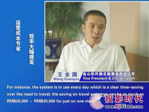 “以前從北京出發(fā)參加一次深圳的會議,往返至少要耗費6小時,而且往返機票也是一筆不小的開支。采用新系統(tǒng)后,公司出差的機會明顯減少了,即使粗略統(tǒng)計,節(jié)省的成本也是相當可觀的。另外,倡導(dǎo)企業(yè)公民責(zé)任是全社會共同關(guān)注的話題,金山公司也在通過如采用視頻通信系統(tǒng)這樣的行動積極響應(yīng)‘綠色企業(yè)’的號召!
