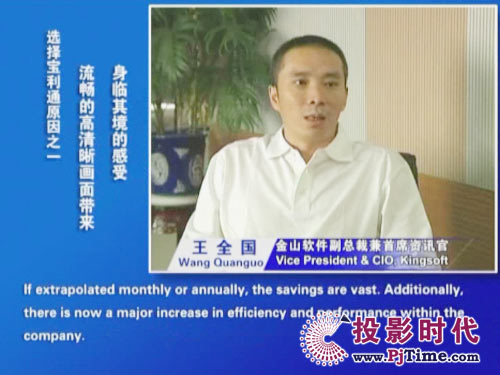 金山軟件副總裁兼首席資訊官王全國先生說道:“對于軟件行業(yè)來說,及時、高效的溝通是保持競爭優(yōu)勢的重要前提。相比之前使用的標清產(chǎn)品,寶利通高清視頻會議系統(tǒng),提供了完全不同的體驗,流暢的高清晰畫面猶如真實的面對面溝通。而且我們公司并沒有申請專線,所有的應(yīng)用都是基于公網(wǎng)實現(xiàn)的。另一方面,新型全中文定制菜單的運用,令我們使用起來非常方便,這更提高了我們使用視頻通信手段實現(xiàn)異地溝通的熱情!