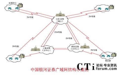 銀河證券采用二級(jí)網(wǎng)絡(luò)結(jié)構(gòu),其中一級(jí)采用三中心的冗余結(jié)構(gòu);二級(jí)為各營業(yè)部。營業(yè)部線路上采用雙專線的冗余線路方式,其中兩條線路分別屬于兩家不同的電信運(yùn)營商。營業(yè)設(shè)備上采用雙設(shè)備,保證了營業(yè)部在設(shè)備上的冗余,避免硬件設(shè)備單點(diǎn)故障,同時(shí)實(shí)現(xiàn)了業(yè)務(wù)網(wǎng)與辦公網(wǎng)的物理分離。