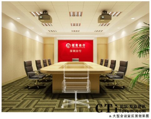 為了保證高清視頻會議的效果,招商銀行專門聘請專業(yè)設(shè)計公司對全行的會議室進行專業(yè)顧問設(shè)計,統(tǒng)一全行會議室的風格,使到極致高清會議效果達到極限。