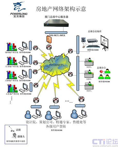 寶龍集團(tuán)在業(yè)內(nèi)進(jìn)行慎重的比較和選擇。首先,該系統(tǒng)不僅能夠支持專線,而且要能兼容寬帶互聯(lián)網(wǎng)。一來專線接入費(fèi)用比較高;二來如果脫離專線網(wǎng)絡(luò),就會普遍存在帶寬不足、瞬時擁塞、高丟包率等問題,視音頻質(zhì)量很難達(dá)到令用戶滿意的水平。其次,企業(yè)要提高自己的競爭力,成本是一個重要的考慮因素。在綜合各種因素,廣泛論證之后,該公司決定選擇一套軟硬結(jié)合、能在互聯(lián)網(wǎng)上實現(xiàn)高清晰度視頻、高性價比的視頻會議系統(tǒng)。
