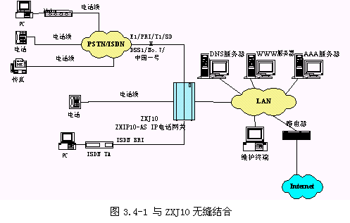 中興ZXIP10-AS IP電話系統(tǒng)總體框架圖見圖1-2,主要包括IP承載網(wǎng)絡(luò)、IP電話網(wǎng)關(guān)、IP電話網(wǎng)絡(luò)的管理設(shè)備(如網(wǎng)守、計(jì)費(fèi)/認(rèn)證中心等)和傳統(tǒng)電路交換網(wǎng)的接入部分。該組網(wǎng)結(jié)構(gòu)支持國(guó)標(biāo)要求。