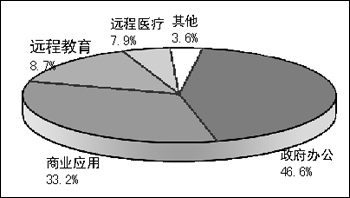 我國的遠程教育和遠程醫(yī)療尚處于發(fā)展初期,所占份額分別是8.7%和7.9%。這反映視頻會議系統(tǒng)在遠程教育、遠程醫(yī)療等方面建設(shè)力度還不夠大。不過,據(jù)研究表明,這兩個領(lǐng)域的應(yīng)用近年來呈現(xiàn)出蓬勃發(fā)展的勢頭。