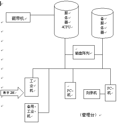 本著數(shù)據(jù)安全、系統(tǒng)穩(wěn)定可靠的前提,我們建議從服務(wù)器到工業(yè)機采用主備方式。主服務(wù)器采用4個CPU的工作方式,工業(yè)機用西門子標準工業(yè)機。圖例如下: