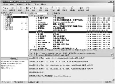 如果你的E-mail很多的話,就需要一個簡單的通信錄來記錄客戶或朋友的聯(lián)系方式,Dreammail的通信錄功能強大,支持郵件群組發(fā)送,可以取代那些功能單一的郵件群發(fā)工具,這對需要一次性將相同內容的信件發(fā)送給多人的用戶來說,真是再方便不過了。