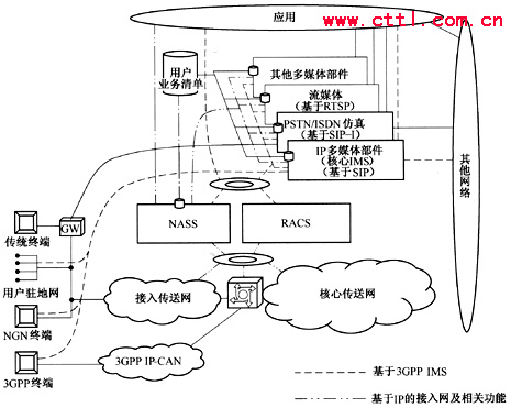 PSTN/ISDN仿真子系統(tǒng):PSTN/ISDN仿真是為連接到IP網(wǎng)(經(jīng)過網(wǎng)關(guān))的傳統(tǒng)電話終端仿真PSTN/ISDN,使所有PSTN/ISDN業(yè)務(wù)保持可用和一致,這樣終端用戶不會意識到?jīng)]有連接到基于TDM的PSTN/ISDN。
