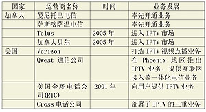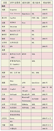1999年,英國Video Networks公司率先在全球推出了IPTV業(yè)務,此后,國外許多電信運營商先后進入IPTV市場。但在2004年之前,多數(shù)運營商僅側(cè)重于IPTV的試驗,2004年后,IPTV開始從試驗階段向商用階段轉(zhuǎn)變,許多業(yè)界人士認為,2005年將成為IPTV年。